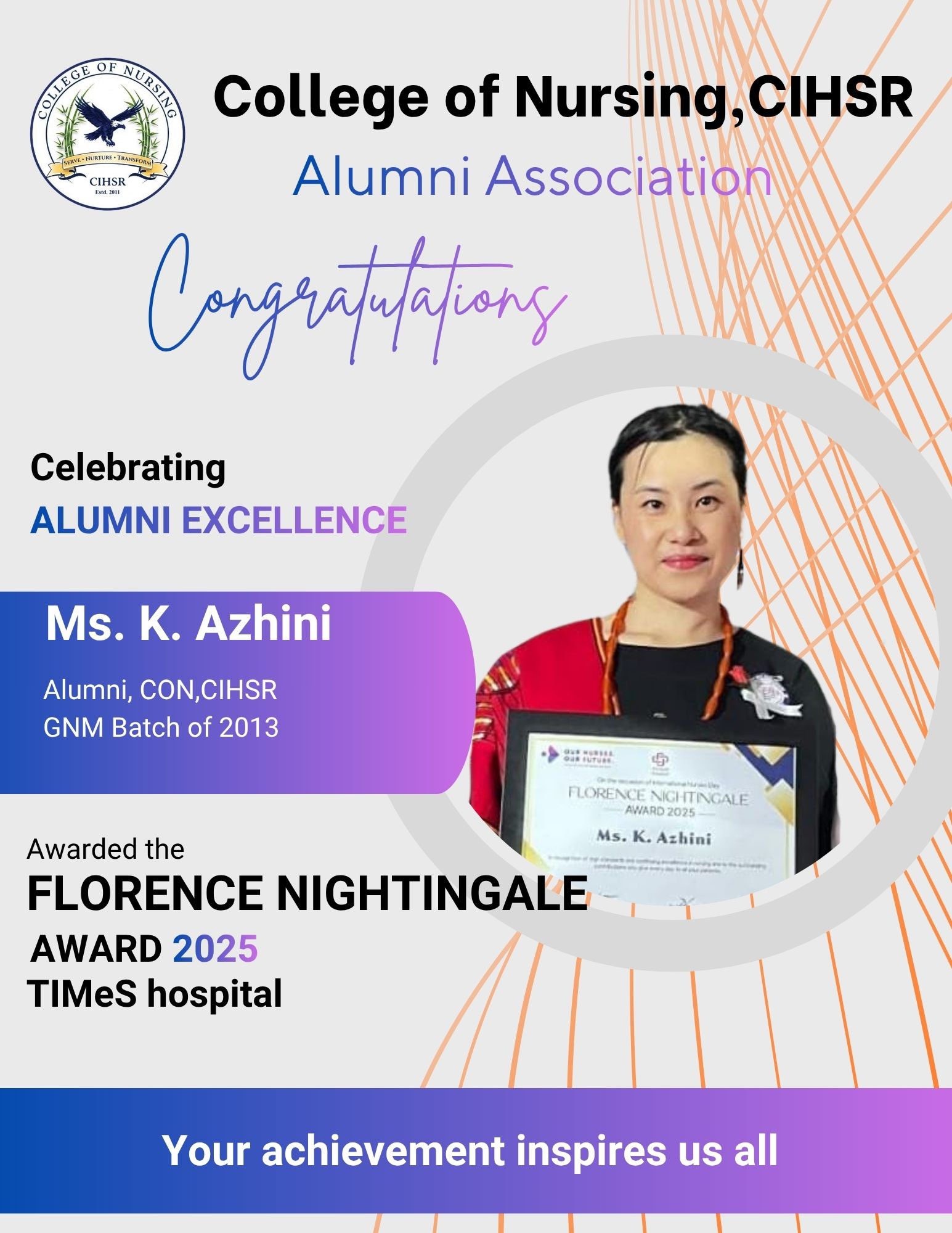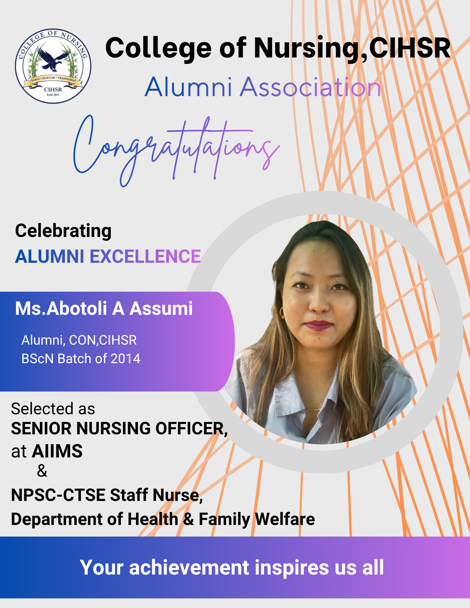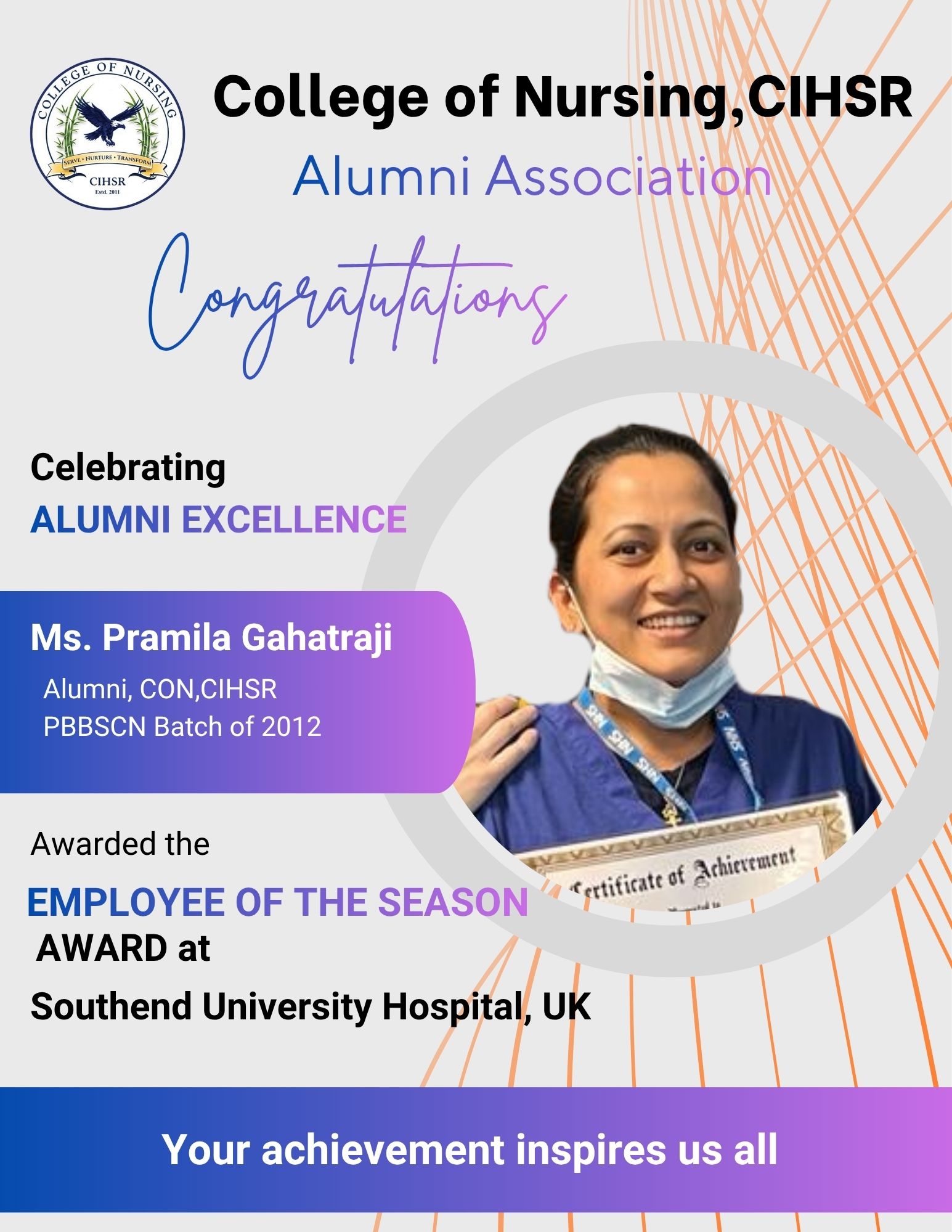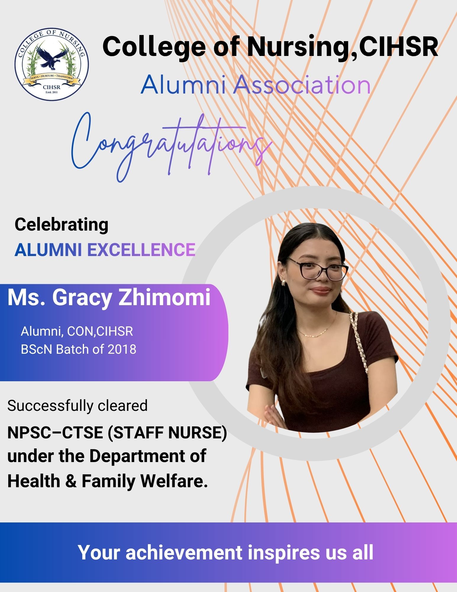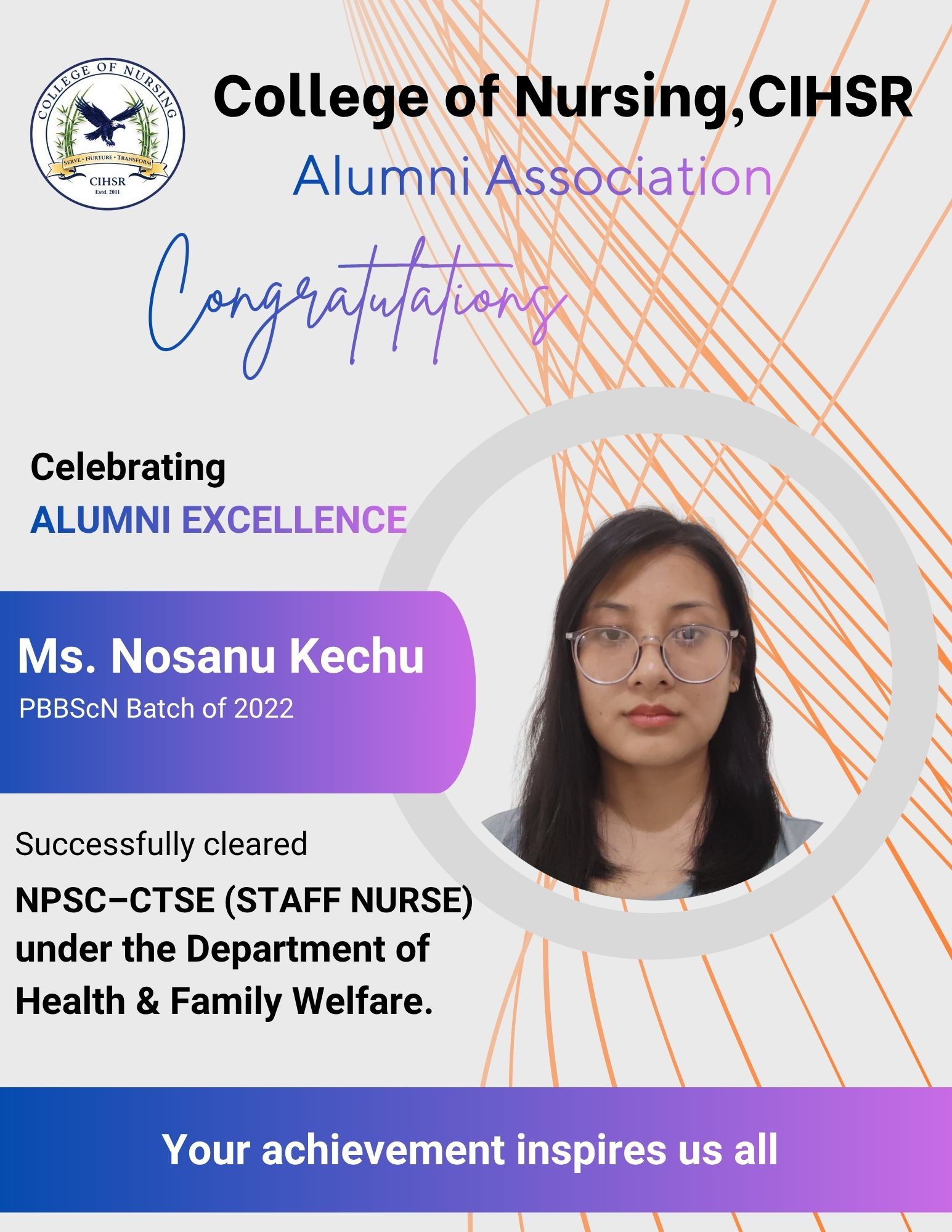 The Alumni Association (AA) of the College of Nursing at CIHSR was established in the year 2017 with the objective of fostering enduring connections with graduates and facilitating networking among alumni. At present, we have 495 life members.